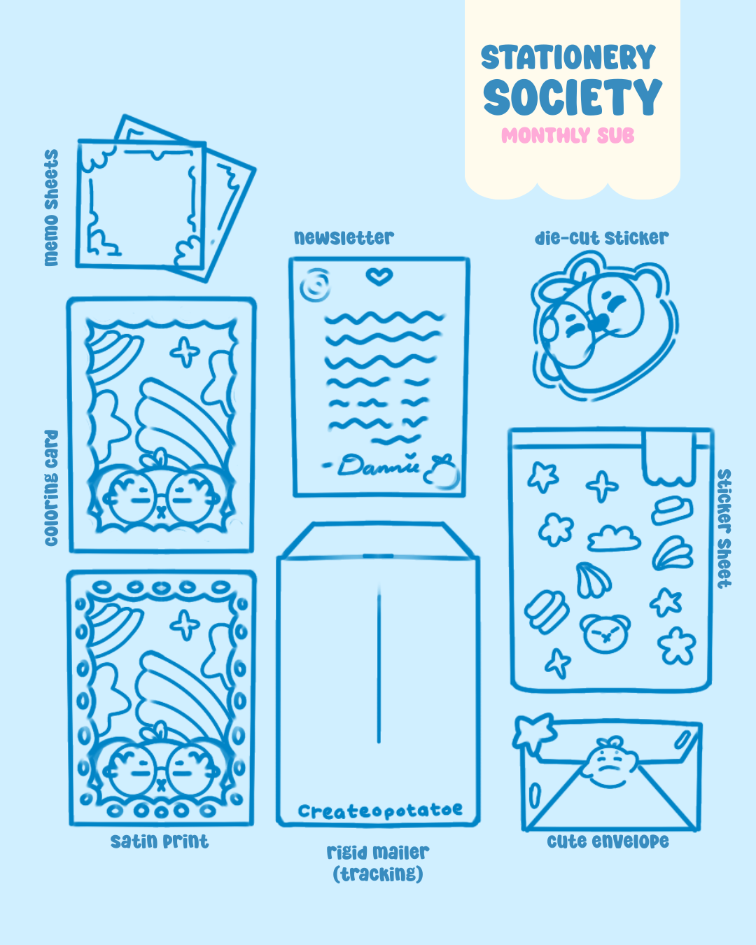 Create-O Potatoe made a gorgeous stationery set this month featuring all the gentle things of saturday morning in her trademark vibrant colors. The sticker sheet immediately got commandeered for my new hobonichi: magic stars and bowls of cereal just the right size to round out the artwork already there. the print and the notes were so joyous as well. can’t wait for my next installment!